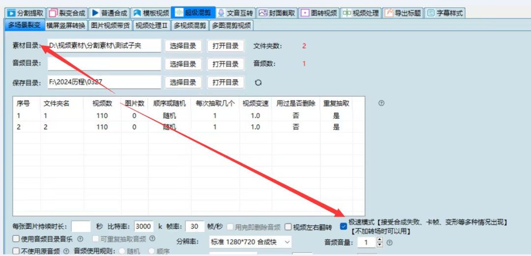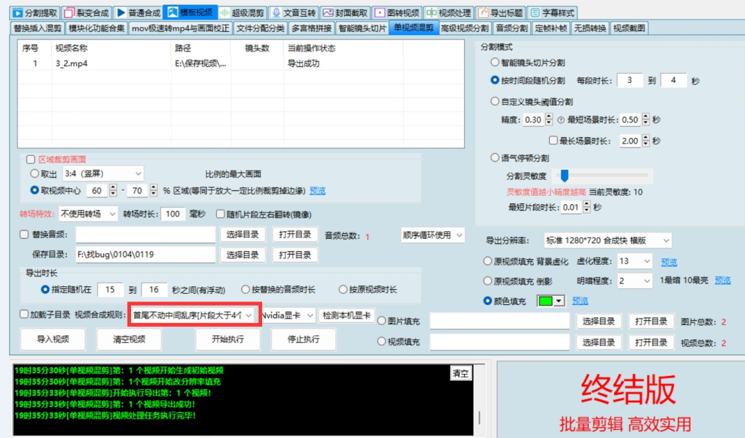 在单视频混剪方面,《吾爱智剪》43.3版同样带来了重大升级。现在,用户可以根据自己的需求,根据指定的时长或者音频时长来合成视频,这为视频剪辑提供了更大的灵活性。无论是为了适应特定的播放平台,还是为了满足特定的叙事节奏,这一功能都能帮助创作者实现他们的目标。