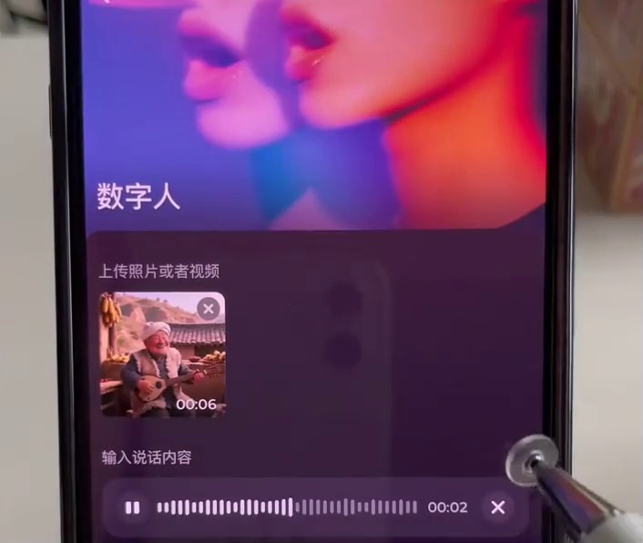 歌曲保存到手机后,回到集梦,找到上面的对口型按钮,选中刚保存的视频,点立即生成,对口型的视频就做好了。